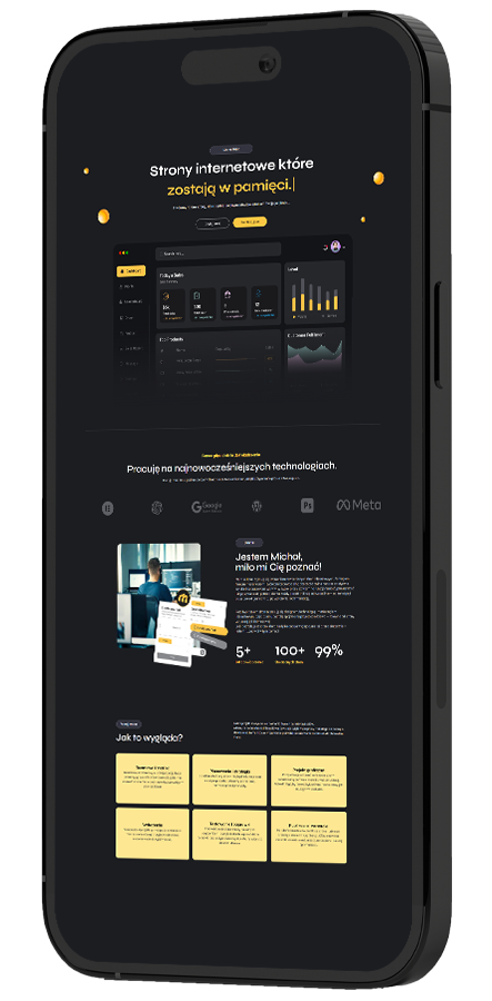 Poza tworzeniem stron interesuję się designem, technologią i marketingiem internetowym, dzięki czemu potrafię spojrzeć na projekt całościowo — zarówno od strony wizualnej, jak i biznesowej.